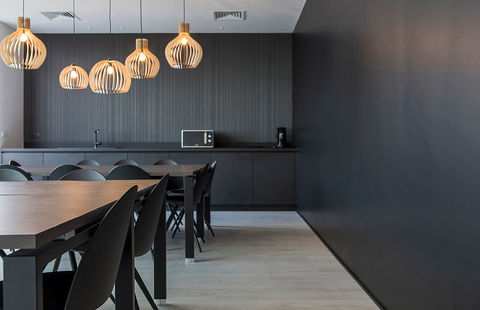 In dit project creëerden we een moderne kantoorruimte die rust en functionaliteit uitstraalt. Met warme aardse tinten, natuurlijke materialen en een overvloed aan groene accenten zorgen we voor een omgeving waarin medewerkers zich goed voelen en productief kunnen werken.